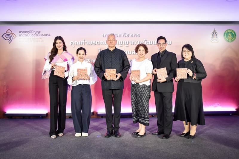 การเปิดตัวหนังสือ "ขุมทรัพย์ล้ำค่ามรดกภูมิปัญญาทางวัฒนธรรม” โดย นางสาวกิตติพร ใจบุญ ผู้เชี่ยวชาญด้านภูมิปัญญา ปฏิบัติหน้าที่ผู้อำนวยการกองมรดกภูมิปัญญาทางวัฒนธรรม กล่าวถึงที่มาและแนวคิดในการจัดทำหนังสือ วัตถุประสงค์และความมุ่งหมายของการเผยแพร่หนังสือ และคุณธัญยธรณ์ นาราเต็มทรัพย์ (นักเขียน / บรรณาธิการเนื้อหา) กล่าวถึงประสบการณ์การเก็บข้อมูลและการทำงานกับผู้ปฏิบัติในพื้นที่ ความท้าทายในการถ่ายทอดความรู้ให้เข้าถึงสังคมร่วมสมัย และสิ่งที่อยากให้ผู้อ่านได้รับจากหนังสือเล่มนี้ จากนั้น เวลา 09.30 น. เป็นต้นไป รับชมและรับฟัง การเสวนาวิชาการ หัวข้อ "คุณค่ามรดกภูมิปัญญาทางวัฒนธรรมในสังคมร่วมสมัย” โดยวิทยากร 4 ท่าน ได้แก่ อาจารย์เผ่าทอง ทองเจือ คุณกิตติพร ใจบุญ คุณภาสินี ญาโณทัย และคุณนภัสรัญชน์ มิตรธีรโรจน์ ดำเนินการเสวนาใน 4 ประเด็นหลัก ได้แก่