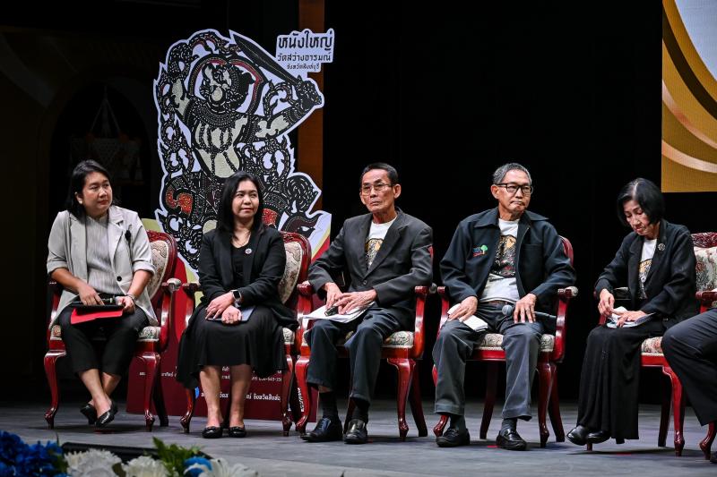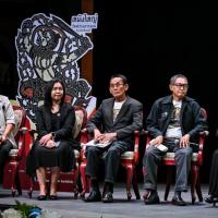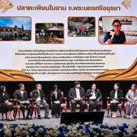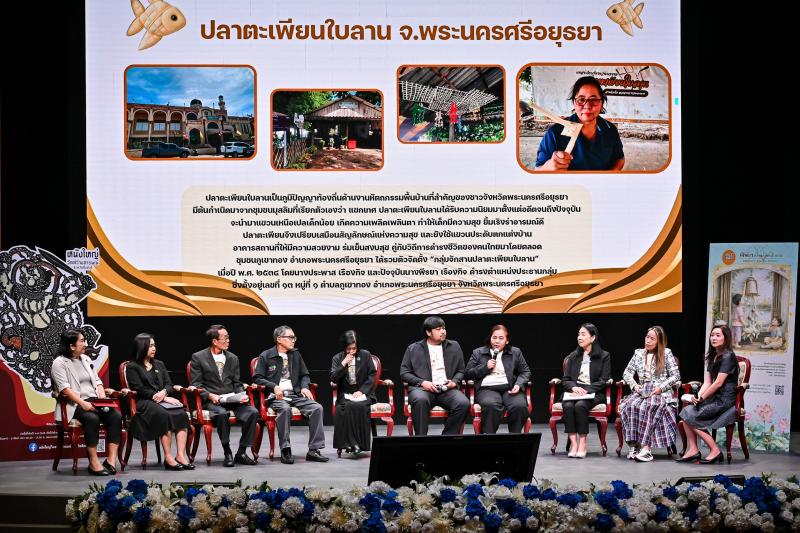 - ช่วงที่ ๓ "สร้างแบรนด์และยกระดับมาตรฐาน” โดย (๑) ผู้ช่วยศาตราจารย์ ดร. ศิวลาภ สุขไพบูลย์วัฒน์ รองผู้อำนวยการฝ่ายบริหาร สถาบันยุทธศาสตร์ทางปัญญาและวิจัย มหาวิทยาลัยศรีนครินทรวิโรฒ (๒) รองศาสตราจารย์ ดร. ชวัลลักษณ์ คุณาธิกรกิจ ผู้เชี่ยวชาญด้านแบบจาลองธุรกิจ อาจารย์ประจำคณะบริหารธุรกิจเพื่อสังคม มหาวิทยาลัยศรีนครินทรวิโรฒ (๓) อาจารย์ ดร. พรนารี ชัยดิเรก ผู้เชี่ยวชาญด้านการออกแบบ อาจารย์ประจำคณะศิลปกรรมศาสตร์ มหาวิทยาลัยศรีนครินทรวิโรฒ (๔) ผู้แทนชุมชนหนังใหญ่วัดสว่างอารมณ์ จังหวัดสิงห์บุรี และ (๕) ผู้แทนจากกลุ่มจักสานปลาตะเพียนใบลาน จังหวัดพระนครศรีอยุธยา