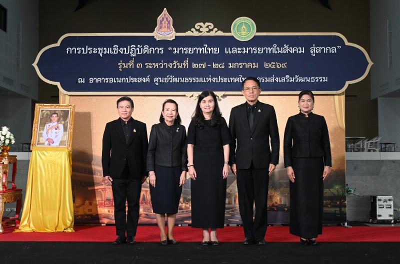 วันที่ ๒๗ มกราคม ๒๕๖๙ เวลา ๐๙.๓๐ น. นางยุถิกา อิศรางกูร ณ อยุธยา อธิบดีกรมส่งเสริมวัฒนธรรม เป็นประธานเปิดการประชุมเชิงปฏิบัติการ "มารยาทไทย และมารยาทในสังคมสู่สากล” รุ่นที่ ๓ พร้อมด้วยนายบันเทิง เพียรค้า ผู้อำนวยการกลุ่มค่านิยมและความเป็นไทย รักษาราชการแทนผู้อำนวยการสถาบันวัฒนธรรมศึกษา คณะวิทยากรผู้ทรงคุณวุฒิ ผู้เข้าร่วมการประชุม เข้าร่วมพิธีเปิด ณ อาคารอเนกประสงค์ ศูนย์วัฒนธรรมแห่งประเทศไทย
