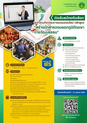 สวธ.เปิดรับสมัครคัดเลือกผู้เข้าร่วมอบรมออนไลน์ เพื่อปั้น “นักสำรวจมรดกภูมิปัญญาทางวัฒนธรรม”