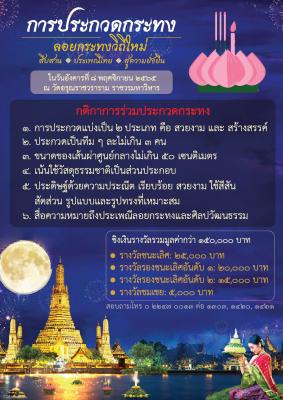 สวธ.ขอเชิญชวนทุกท่าน สมัครเข้าร่วมประกวดกระทง เนื่องในงานสืบสานประเพณีลอยกระทง พุทธศักราช ๒๕๖๕ “ลอยกระทงวิถีใหม่ สืบสาน ประเพณีไทย สู่ความยั่งยืน” ชิงเงินรางวัลรวมมูลค่ากว่า ๑๕๐,๐๐๐ บาท