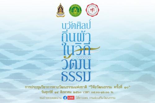 วธ.ร่วมกับ มศว. จัดการประชุมวิชาการทางวัฒนธรรมแห่งชาติ ครั้งที่ ๑๐ “นวัตศิลป์ ถิ่นผ้า ในวิถีวัฒนธรรม” น้อมระลึกในพระมหากรุณาธิคุณของสมเด็จพระบรมราชชนนีพันปีหลวง ที่ทรงประกอบพระราชกรณียกิจ ในการอนุรักษ์ ฟื้นฟู และพัฒนาผ้าไทยจนเป็นที่รู้จักและยอมรับอย่างแพร่หลาย