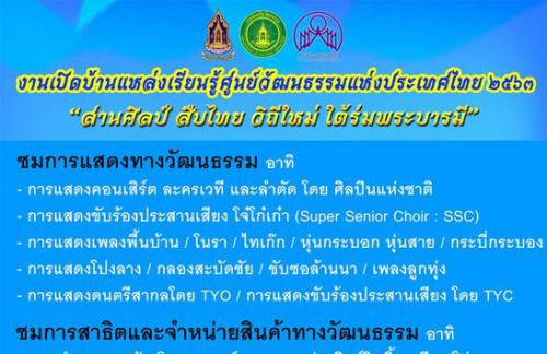 สวธ.ขอเชิญร่วมงานเปิดบ้านแหล่งเรียนรู้ศูนย์วัฒนธรรมแห่งประเทศไทย ๒๕๖๓
