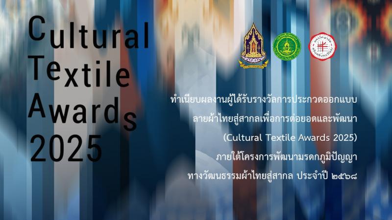 กรมส่งเสริมวัฒนธรรม ร่วมกับ ศูนย์บริการวิชาการ มหาวิทยาลัยศรีนครินทรวิโรฒ ดำเนินการจัดกิจกรรมการประกวดออกแบบลายผ้าไทยสู่สากลเพื่อการต่อยอดและพัฒนา (Cultural Textile Awards 2025) ภายใต้โครงการพัฒนามรดกภูมิปัญญาทางวัฒนธรรมผ้าไทยสู่สากล ประจำปี 2568 โดยมีวัตถุประสงค์เพื่อส่งเสริมพัฒนาศักยภาพผู้ประกอบการผ้าทอพื้นถิ่นของไทย นักออกแบบลายผ้ารุ่นใหม่ และนิสิตนักศึกษา ภายใต้แนวคิดจากหนังสือแนวโน้มและทิศทางผ้าไทยและการออกแบบเครื่องแต่งกายด้วยผ้าไทย (Thai Textiles Trend Book) นำเสนอการสร้างสรรค์ลายผ้าไทย เพื่อตอบโจทย์ความต้องการของตลาด และต่อยอดภูมิปัญญาสู่ความยั่งยืนสืบไป กิจกรรมการประกวดออกแบบลายผ้าไทยสู่สากลเพื่อการต่อยอดและพัฒนา (Cultural Textile Awards 2025) ประกอบด้วยกิจกรรมย่อย ได้แก่ การเผยแพร่และถ่ายทอดองค์ความรู้จากหนังสือแนวโน้มและทิศทางผ้าไทยและการออกแบบเครื่องแต่งกายด้วยผ้าไทย (Thai Textiles Trend Book) และชี้แจงแนวทางการประกวด กิจกรรมการประกวดออกแบบลายผ้าไทยสู่สากลเพื่อการต่อยอดและพัฒนา (Cultural Textile Awards 2025) ภายใต้โครงการพัฒนามรดกภูมิปัญญา ทางวัฒนธรรมผ้าไทยสู่สากล ประจำปี 2568 โดยได้รับความอนุเคราะห์จากผู้เชี่ยวชาญด้านผ้าไทย ที่ปรึกษาด้านภาพลักษณ์ ผู้เชี่ยวชาญด้านแฟชั่น และนักออกแบบที่มีชื่อเสียงและมากด้วยประสบการณ์จากเวทีแฟชั่นในระดับสากล ร่วมเป็นวิทยากร