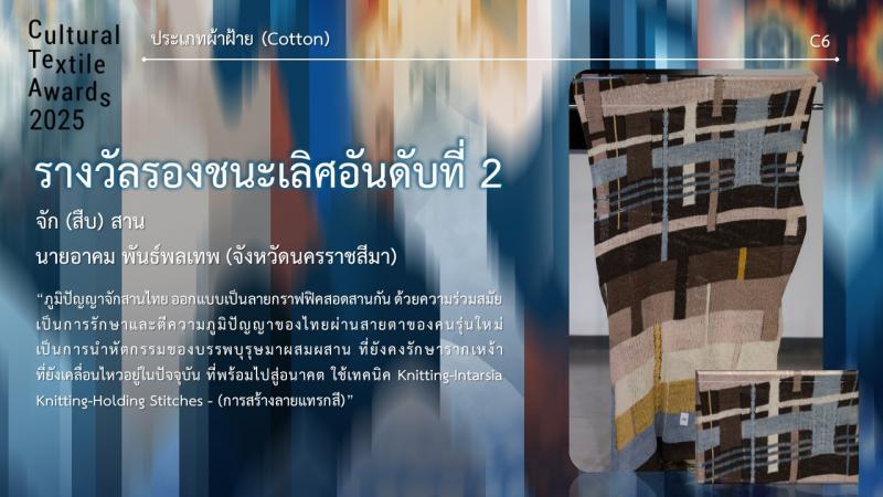 รางวัลรองชนะเลิศ อันดับ 2 ชื่อผลงาน จัก (สืบ) สาน ชื่อผู้ประกวด นายอาคม พันธ์พลเทพ จากจังหวัดนครราชสีมา