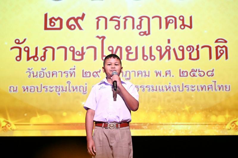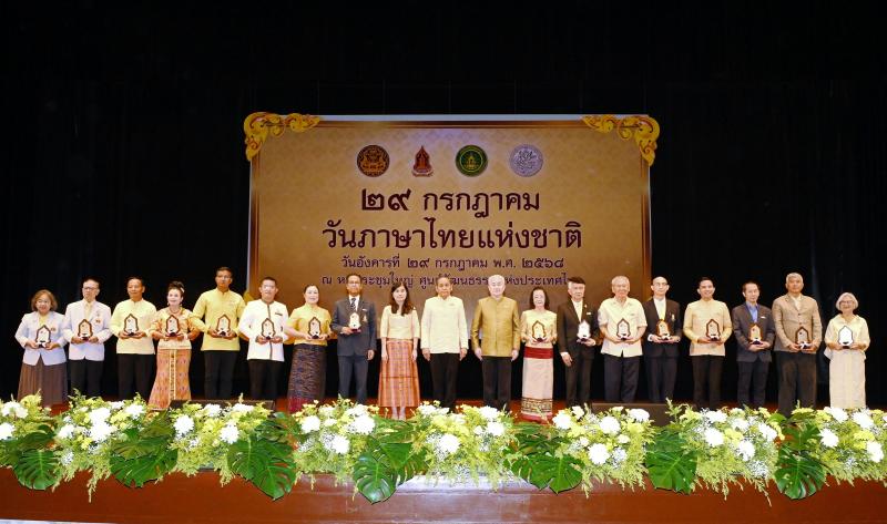 กระทรวงวัฒนธรรม จัดงานวันภาษาไทยแห่งชาติ พุทธศักราช ๒๕๖๘ ร่วมสืบสานภาษาไทย ปลูกฝังคนรุ่นใหม่ ให้ใช้ภาษาไทยอย่างถูกต้อง วันอังคารที่ ๒๙ กรกฎาคม ๒๕๖๘ เวลา ๐๙.๓๐ น. นางสาวแพทองธาร ชินวัตร รัฐมนตรีว่าการกระทรวงวัฒนธรรม มอบหมายให้ นายประสพ เรียงเงิน ปลัดกระทรวงวัฒนธรรม เป็นประธานในงานวันภาษาไทยแห่งชาติ พุทธศักราช ๒๕๖๘ ณ หอประชุมใหญ่ ศูนย์วัฒนธรรมแห่งประเทศไทย โดยมี นายพนมบุตร จันทรโชติ อธิบดีกรมศิลปากร นางยุถิกา อิศรางกูร ณ อยุธยา อธิบดีกรมส่งเสริมวัฒนธรรม ผู้บริหารกระทรวงวัฒนธรรม ผู้บริหารกรมส่งเสริมวัฒนธรรม ผู้ทรงคุณวุฒิ ผู้ได้รับรางวัลเชิดชูเกียรติ เครือข่าย ทางวัฒนธรรม สื่อมวลชน และแขกผู้มีเกียรติ เข้าร่วมงาน