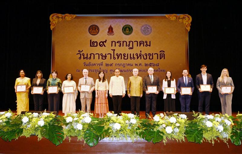 นอกจากนี้ ยังมีการมอบเกียรติบัตรให้แก่สถานเอกอัครราชทูตและสถานกงสุลใหญ่ประจำประเทศไทยที่เข้าร่วมส่งคลิปวีดิทัศน์ส่งเสริมการใช้ภาษาไทย เนื่องในวันภาษาไทยแห่งชาติ มีจำนวน ๒๕ ประเทศ ได้แก่ (๑) ออสเตรเลีย (๒) สาธารณรัฐชิลี (๓) สาธารณรัฐโคลอมเบีย (๔) ราชอาณาจักรเดนมาร์ก (๕) สาธารณรัฐฝรั่งเศส (๖) สาธารณรัฐกัวเตมาลา (๗) สาธารณรัฐอินเดีย (๘) สาธารณรัฐคาซัคสถาน (๙) มัลดีฟส์ (๑๐) สหรัฐเม็กซิโก (๑๑) สาธารณรัฐสังคมนิยมประชาธิปไตยศรีลังกา (๑๒) สหรัฐอเมริกา (๑๓) เบลเยียม (๑๔) แคนาดา (๑๕) สาธารณรัฐประชาชนจีน (๑๖) สาธารณรัฐอินโดนีเซีย (๑๗) รัฐอิสราเอล (๑๘) ญี่ปุ่น (๑๙) สาธารณรัฐเกาหลี (๒๐) รัฐคูเวต (๒๑) มาเลเซีย (๒๒) สาธารณรัฐโปรตุเกส (๒๓) สมาพันธรัฐสวิส (๒๔) ยูเครน (๒๕) สาธารณรัฐอุซเบกิสถาน