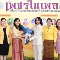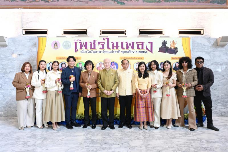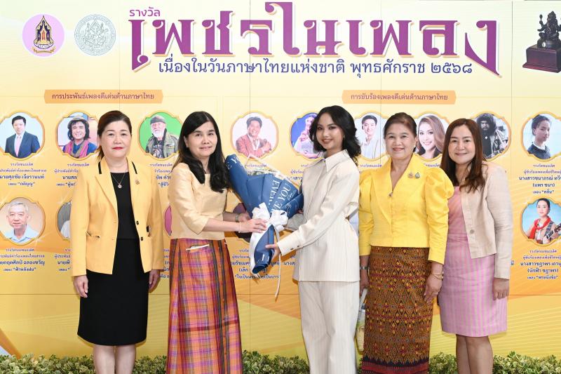 ๑. การประกวดเพลง "เพชรในเพลง” เนื่องในวันภาษาไทยแห่งชาติ พุทธศักราช ๒๕๖๘ จัดขึ้นเพื่อยกย่องบุคคลในวงการเพลงที่มีผลงานดีเด่นด้านภาษาไทย ได้แก่ นักประพันธ์เพลงที่มีความสามารถผสมผสานความรู้ทางภาษา วรรณศิลป์ คีตศิลป์ และจินตนาการได้อย่างเหมาะสม และนักร้องที่ขับร้องเพลงได้ชัดเจนและถูกต้องตามหลักภาษาไทย มีศิลปะการใช้เสียง และถ่ายทอดจังหวะอารมณ์ในการขับร้องได้อย่างยอดเยี่ยม ทั้งยังเชิดชูเกียรติบุคคล องค์กร หรือโครงการที่มีผลงานดีเด่นด้านการส่งเสริมภาษาไทย และมีคุณูปการต่อวงการเพลง โดยผลการประกวดเพลง "เพชรในเพลง” เนื่องในวันภาษาไทยแห่งชาติ พุทธศักราช ๒๕๖๘ มีทั้งสิ้น ๒๐ รางวัล ได้แก่