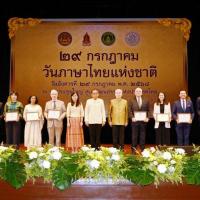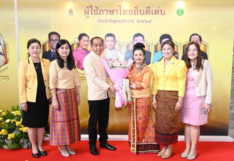 ปลัดกระทรวงวัฒนธรรม กล่าวเสริมว่า กรมส่งเสริมวัฒนธรรมได้ดำเนินการคัดเลือกบุคคลและองค์กรที่มีบทบาทโดดเด่นด้านภาษาไทยอย่างต่อเนื่องเป็นประจำทุกปี โดยในปีพุทธศักราช ๒๕๖๘ นี้ กรมส่งเสริมวัฒนธรรมได้พิจารณาคัดเลือกบุคคลและองค์กรเพื่อรับเข็มและโล่เชิดชูเกียรติทางด้านภาษาไทย แบ่งเป็น ๔ ประเภท จำนวน ๑๖ รางวัล ดังนี้ ๑.ปูชนียบุคคลด้านภาษาไทย จำนวน ๑ ราย ได้แก่ รองศาสตราจารย์จุไรรัตน์ ลักษณะศิริ ๒.ผู้ใช้ภาษาไทยดีเด่น จำนวน ๗ ราย ได้แก่