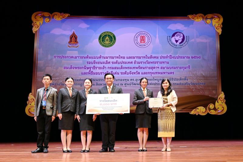 สวธ.จัดการประกวดเยาวชนต้นแบบด้านมารยาทไทยและมารยาทในสังคม ประจำปีงบประมาณ พ.ศ. ๒๕๖๘ ถ้วยพระราชทาน สมเด็จพระกนิษฐาธิราชเจ้า กรมสมเด็จพระเทพรัตนราชสุดา ฯ สยามบรมราชกุมารี รอบชิงชนะเลิศ ระดับประเทศ (ระดับอุดมศึกษาและประกาศนียบัตรวิชาชีพชั้นสูง) : เยาวชนต้นแบบ มารยาทไทย สืบสานค่านิยมที่ดีงาม