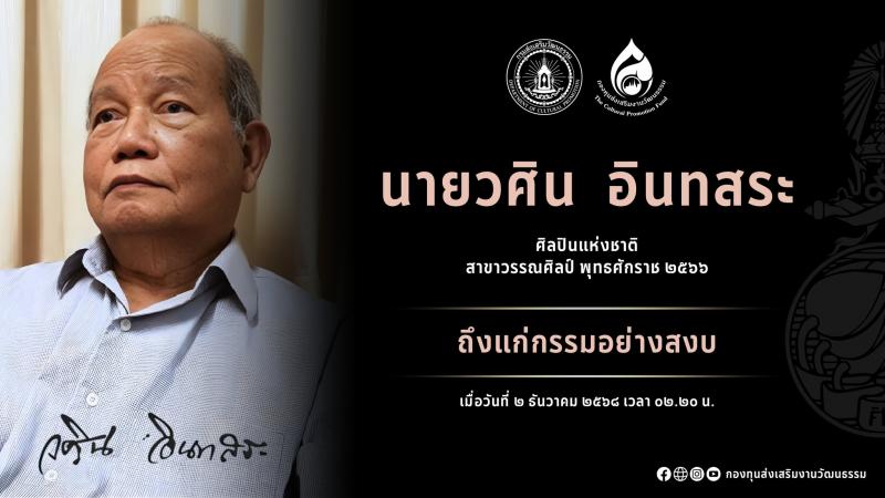 กรมส่งเสริมวัฒนธรรม โดยกองกองทุนส่งเสริมงานวัฒนธรรม ได้รับประสานจากทายาทของ นายวศิน อินทสระ ศิลปินแห่งชาติ สาขาวรรณศิลป์ พุทธศักราช ๒๕๖๖ ว่า นายวศิน อินทสระ เสียชีวิตด้วยอาการสงบ เมื่อวันอังคารที่ ๒ ธันวาคม พ.ศ. ๒๕๖๘ เวลา ๐๒.๒๐ น.