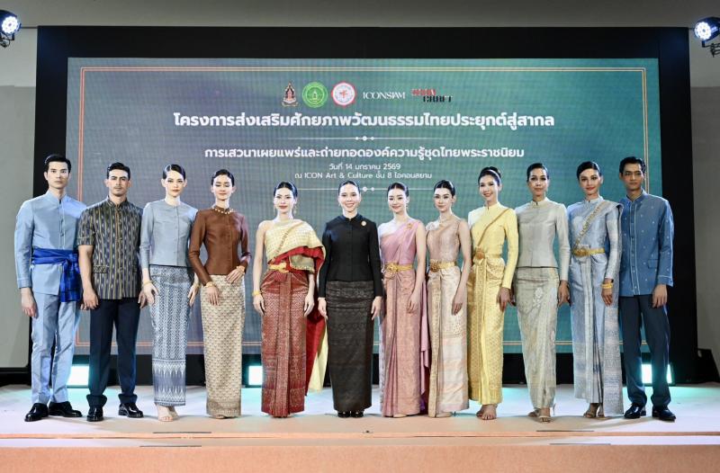วันพุธที่ ๑๔ มกราคม ๒๕๖๙ เวลา ๑๖.๐๐ น. นางสาวซาบีดา ไทยเศรษฐ์ รัฐมนตรีว่าการกระทรวงวัฒนธรรม เป็นประธานเปิดการเสวนาเผยแพร่และถ่ายทอดองค์ความรู้ชุดไทยพระราชนิยม และนิทรรศการชุดไทยพระราชนิยม เทิดพระเกียรติสมเด็จพระนางเจ้าสิริกิติ์ พระบรมราชินีนาถ พระบรมราชชนนีพันปีหลวง ภายใต้โครงการส่งเสริมศักยภาพวัฒนธรรมไทยประยุกต์สู่สากล พร้อมด้วย คณะทูตานุทูต นายประสพ เรียงเงิน ปลัดกระทรวงวัฒนธรรม นางยุถิกา อิศรางกูร ณ อยุธยา อธิบดีกรมส่งเสริมวัฒนธรรม คณะที่ปรึกษาโครงการชุดไทยพระราชนิยมและผ้าไทย วัฒนธรรมจังหวัดและผู้แทน นางสาวกิตติพร ใจบุญ ผู้เชี่ยวชาญด้านภูมิปัญญา ปฏิบัติหน้าที่ผู้อำนวยการกองมรดกภูมิปัญญาทางวัฒนธรรม นางสาวศิวพร ฉันทไกรวัฒน์ ผู้อำนวยการกลุ่มเผยแพร่และต่อยอดมรดกภูมิปัญญาทางวัฒนธรรม ผู้บริหาร ข้าราชการกรมส่งเสริมวัฒนธรรม แขกผู้เกียรติ และสื่อมวลชน เข้าร่วมพิธีเปิด ณ ICON Art & Culture Space ชั้น ๘ ไอคอนสยาม กรุงเทพมหานคร